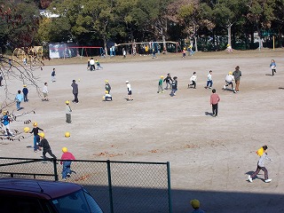 多くの子が運動場で元気に走り回って遊んでいました。