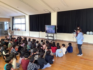 はじめに、「ジングルベル」を皆で歌い、担任の先生による読み聞かせがありました。