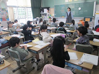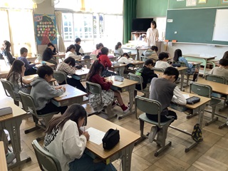本日も曇天で気温が上がらない中ですが、6年生は元気に学習に取り組んでいます。