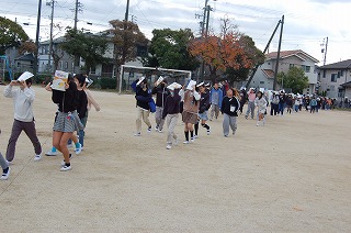 全校児童が運動場へ避難しました。