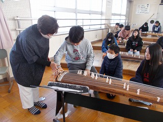 昨日と本日、6年生は講師の先生方に来ていただき琴の授業を受けました。