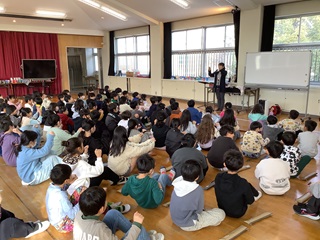 最後は、先生に演奏を披露していただきました。子どもたちは、先生の指の動きを見ながら聴いていました。
