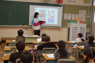 はじめに、「ジングルベル」を皆で歌い、担任の先生による読み聞かせがありました。