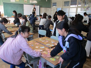 1組は国語の授業で、「ことわざカルタ」を行っていました。