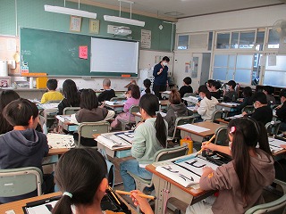 2時間目は、1組は外国語(ALTの先生と共に)、2組は図工、3組は国語でした。