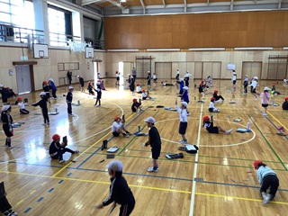 キャリア教育の取り組みで、アイシンバレーボール部の田中夏希選手を迎えてレクリエーションをしたり話を聞いたりしました。
