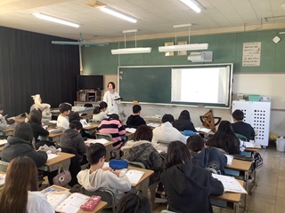 3組は外国語の授業でリスニングをしていました。