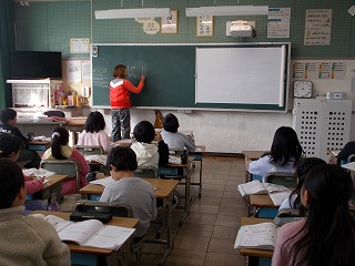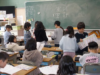 4年1組は、ALTと一緒に英語で道案内をする練習をしていました。