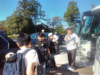 京都駅に到着。MKタクシーの朝礼を見学し、班別研修に出発しました。