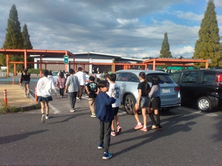 乙川小学校に戻って来ました。帰着式の様子です。お迎えに来てくださった保護者の皆様、ありがとうこざいました。