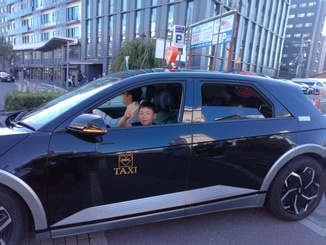 京都駅に到着。MKタクシーの朝礼を見学し、班別研修に出発しました。