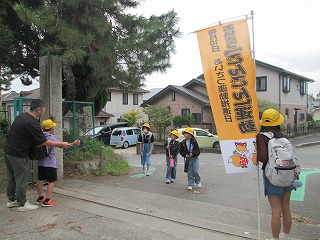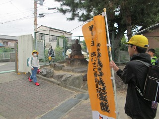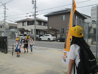 とても涼しい朝になり、秋を感じながら元気にあいさつをしました。