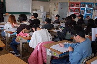 1組は国語でした。物語を自分で創るために、説明を聞いていました。