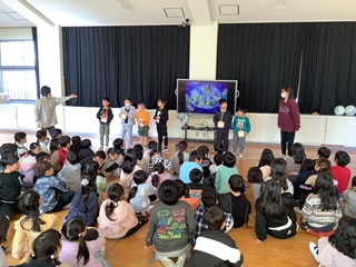はじめに、「ジングルベル」を皆で歌い、担任の先生による読み聞かせがありました。