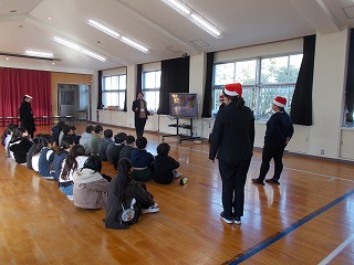 5時間目に、1年生がふれあい広場で、クリスマス集会を行いました。