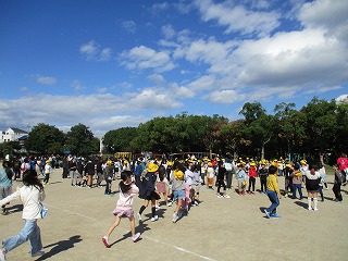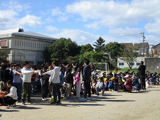 教室や図書館、体育館など、それぞれの場所から運動場に避難しました。