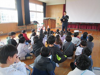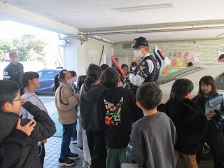 今日は半田警察から警察官の方にお越しいただき、3年生が出前授業を行いました。