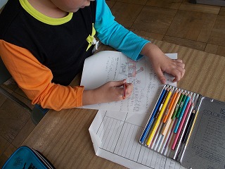 社会科の授業では、消防署の見学をもとに、まとめをしています。