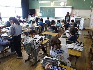 5の1は社会の授業で、世界の国を調べていました。