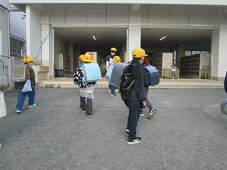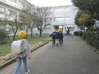 全校児童が運動場へ避難しました。