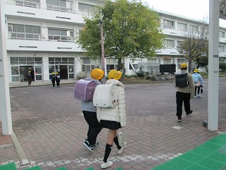 子どもたちは暖かい上着やネックウォーマーで防寒をして、元気に登校していました。