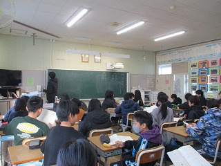 最後に学活を行い、冬休みの宿題を提出したり、新しい教材に名前を書いたりしました。