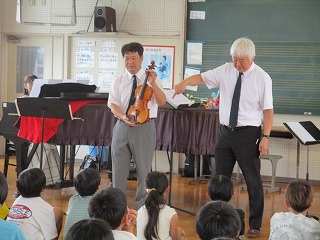 4年生で行われた交響楽団による「アウトリーチ事業」の様子です。